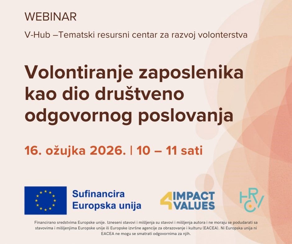 Webinar se održava u okviru programa V-Hub, financiranog od strane Impact4Values 2.0.